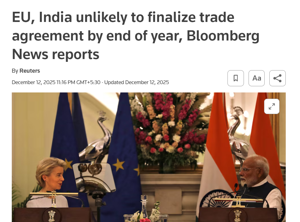 For instance, look at this headline from Reuters: the source was ofcourse Bloomberg, and they reported on the trade deal between the European Union and India seeming difficult by the end of this year. The year was anyway about to end, but how cleverly the headline was construed as if the deal wouldn’t happen till the end of 2026!
