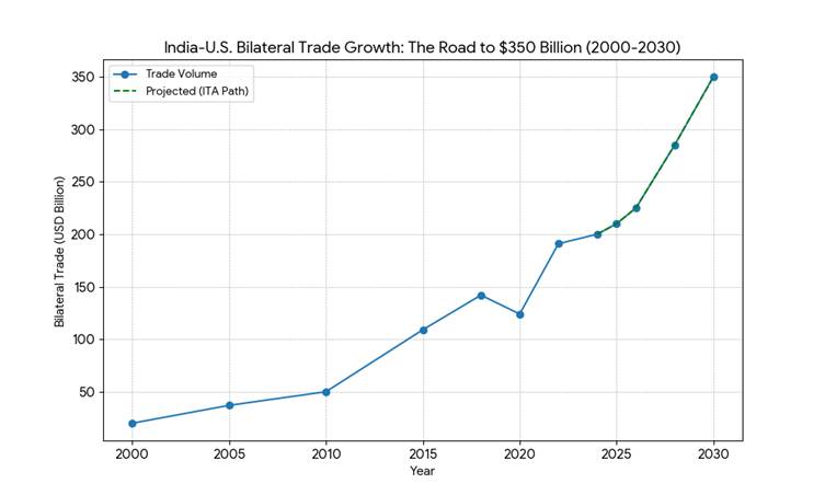 The India–U.S. Interim Trade Agreement (2026) represents a calibrated transition toward strategic bilateralism in an era of global economic fragmentation. Rather than a conventional tariff-liberalization instrument, it serves as a structural bridge toward comprehensive economic alignment. If institutionalized into a full Bilateral Trade Agreement, bilateral trade could expand to USD 320–350 billion by 2030